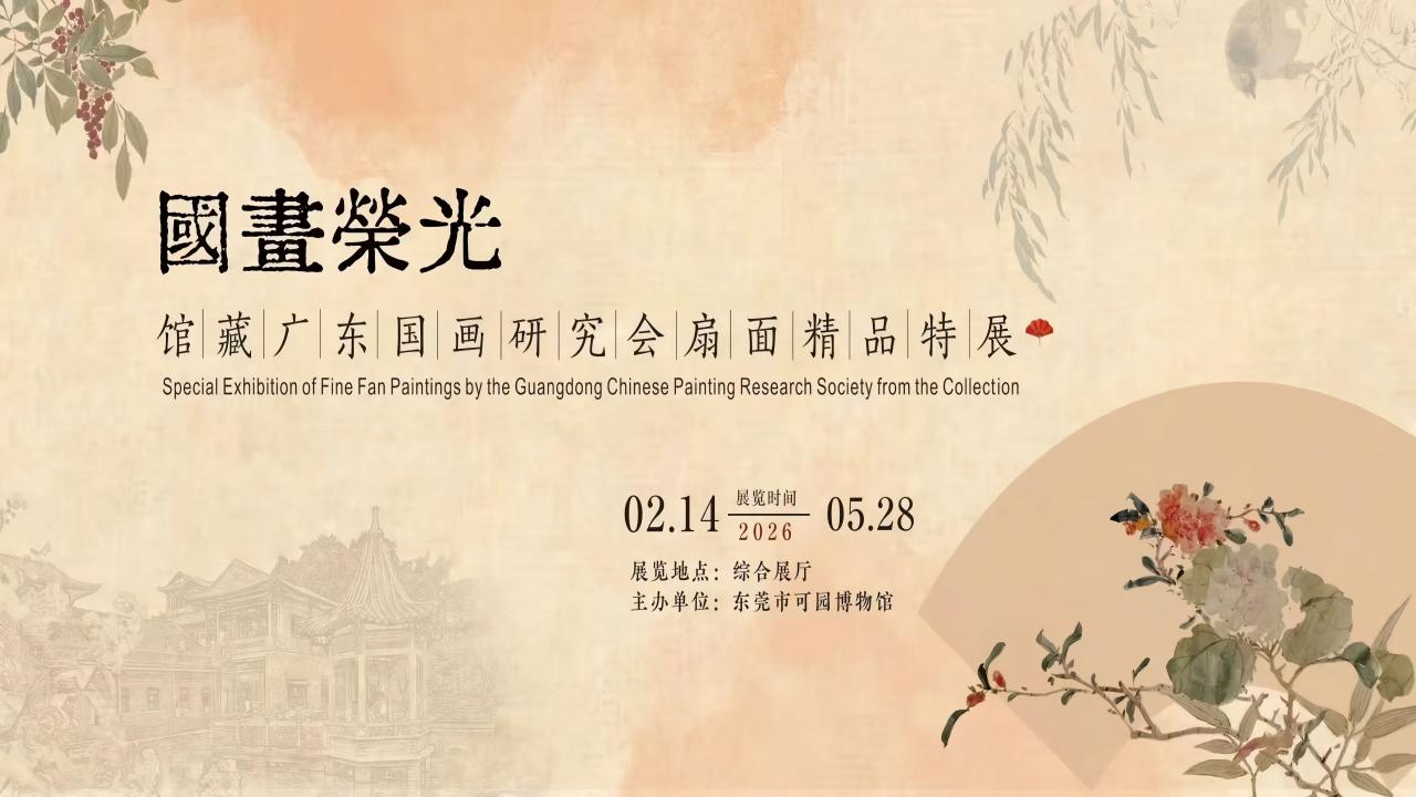 本次展览是馆藏广东国画研究会作品的首次扇面专题展。扇面题材丰富,涵盖山水、花鸟等诸多题材,既有赵浩公、黄般若等研究会核心成员的精心之作,也有邓尔雅、卢子枢等东莞籍名家的传世佳品。